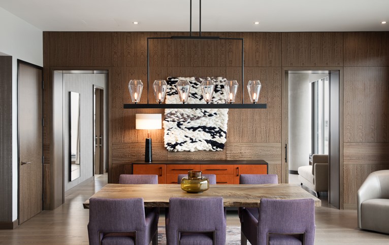 Treo lơ lửng trên trần cao là tác phẩm giấy cắt thủ công tinh xảo mang tên Trạm quá cảnh sinh học (Circadian Transit) được tạo ra từ bàn tay khéo léo của nghệ nhân người Mỹ Tahiti Pehrson. Gần đó là một lò sưởi ba mặt ngăn cách khu vực check-in với khu vực phòng chờ.
