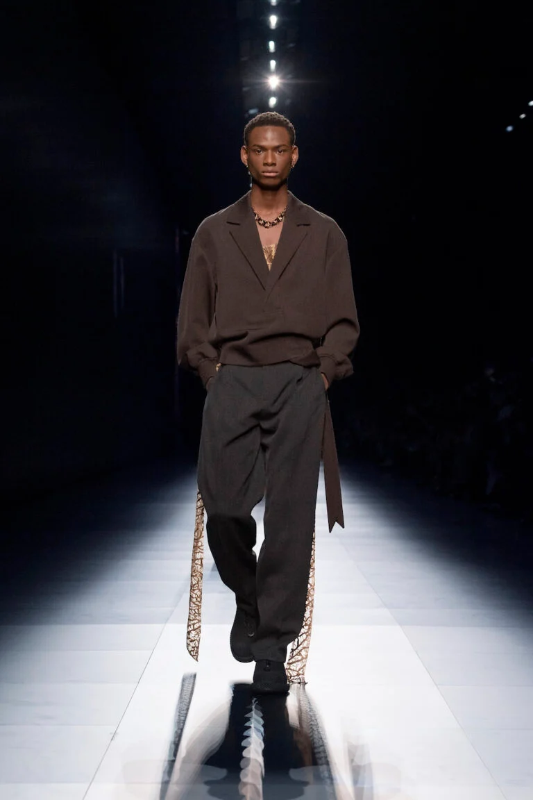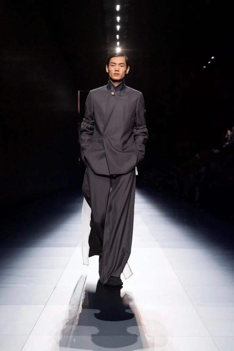 Không dừng lại ở di sản của Saint Laurent, NTK người Anh còn mang vẻ đẹp dịu êm và không ngừng đổi mới của hai con sông nổi tiếng của Paris và London vào từng tạo tác thời trang dành cho nam giới của mình để giới mộ điệu có thể cảm nhận hết sự mượt mà, uyển chuyển của lụa là, đôi khi mạnh mẽ, quyết liệt của các đường cắt may tinh xảo như chuyển động của dòng nước trong xanh kia.