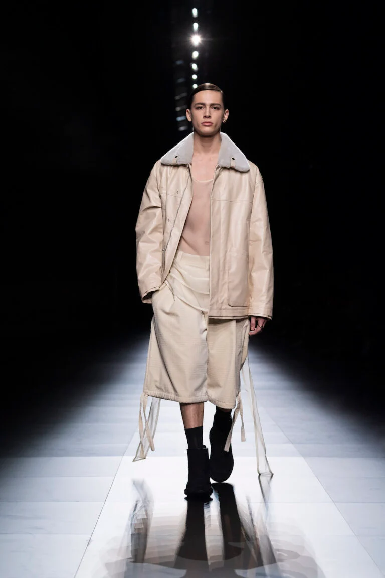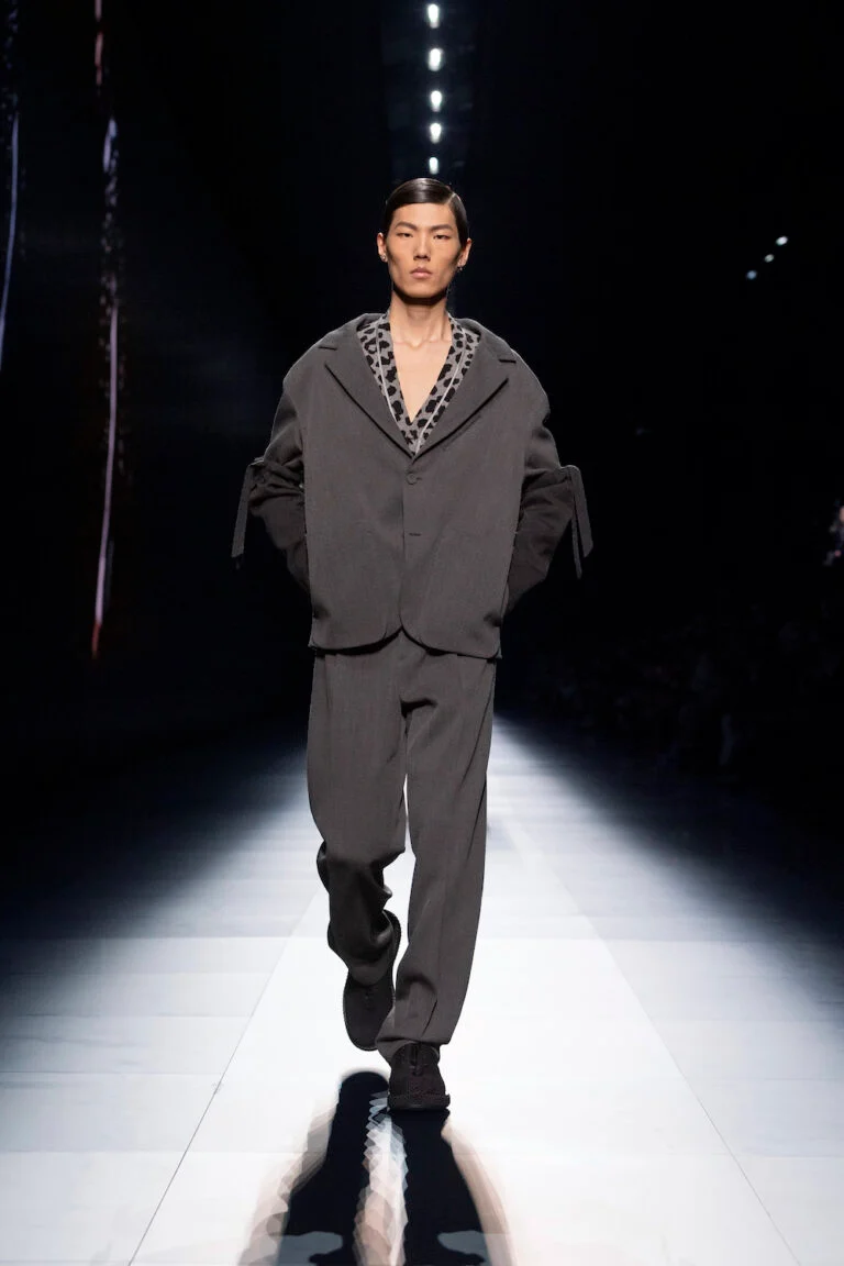 Thời điểm nhà sáng lập Christian Dior qua đời, đánh dấu một kỷ nguyên mới cho nhà mốt Pháp với sự dẫn dắt của nhà thiết kế thiên tài Yves Saint Laurent – cánh tay đắc lực được chính Christian Dior “sắc phong” Giám đốc Sáng tạo. Cuộc “thay máu” mang tính cách mạng của Saint Laurent tại Dior được vị Giám đốc Nghệ thuật đương nhiệm “giải mã” lại theo ngôn ngữ thời trang hiện đại thông qua BST Dior Men Thu Đông 2023.
