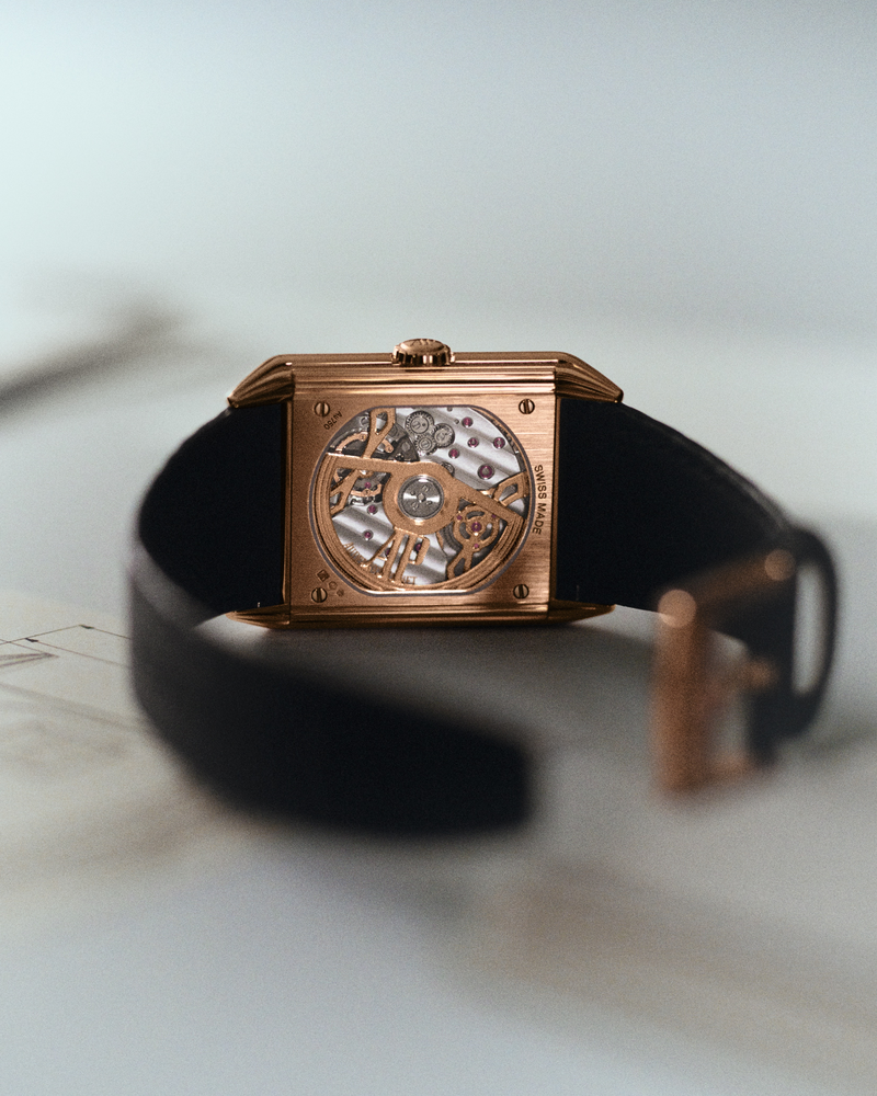 Với kích thước vỏ 32,6mm x 34mm, mẫu đồng hồ mới kế thừa các yếu tố thẩm mỹ của chiếc 1271, mang đến một sự tri ân đương đại dành cho phong cách Streamline. Bộ vỏ hình chữ nhật bằng vàng hồng 18 carat được tạo hình với tám đường gờ dọc (gadroons) ở mỗi bên, kéo dài thành những đường nét thanh thoát và thu gọn về phía càng nhọn, gợi lên cảm giác chuyển động khí động học. Họa tiết đặc trưng này còn xuất hiện đồng bộ trên phần nắp đáy, núm crown và rô-to, tất cả đều bằng vàng hồng 18 carat. Việc căn chỉnh hoàn hảo các đường nét trên nắp đáy sao cho thẳng hàng với phần tai đồng hồ đòi hỏi độ chính xác đặc biệt, đảm bảo sự hài hòa tuyệt đối về mặt thị giác.