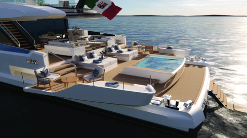 Điểm nhấn đặc biệt nằm ở đuôi tàu, nơi một beach club rộng rãi, sân hiên hướng biển, bệ mở có thể gập lại và một hồ bơi lớn sẽ mang đến những phút giây thư giãn tuyệt vời. Ở mũi tàu, khu vực salon sang trọng kiêm rạp chiếu phim ngoài trời mang đến trải nghiệm độc đáo. Không kém phần ấn tượng, boong tắm nắng trên NL 50 Plus thuộc hàng lớn nhất trong phân khúc, với cả bể sục Jacuzzi và hố đốt lửa. Chưa hết, garage chứa đồ chơi rộng rãi đủ chỗ cho xuồng 7 mét, xuồng dành cho thủy thủ đoàn và một kho đồ chơi dưới nước khổng lồ.