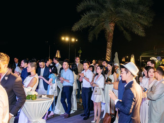 Trong buổi chiều tà ngập nắng vàng và giớ nhẹ, ba chiếc du thuyền sang trọng lần lượt đưa những vị khách VIP bao gồm các doanh nhân trong ngành du thuyền, đại diện các thương hiệu cao cấp, các ngôi sao giải trí và giới truyền thông lướt sóng, chiêm ngưỡng ánh mặt trời hoàng hôn rực rỡ đang dần lặn xuống trên mặt nước và phong cảnh thành phố hiện đại sôi động.