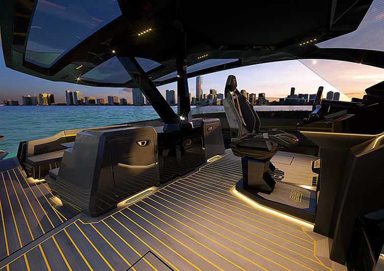 Thuyền trưởng sẽ ngồi vào ghế lái, cầm vô lăng, bật nắp chặn và bấm công tắc "Start & Stop" để khởi động du thuyền. Tất cả được Tecnomar mô phỏng trọn vẹn & hoàn toàn chính xác các thao tác khi bạn ngồi vào Lamborghini và khởi động. Một điều mà các tín đồ siêu xe sẽ cực kì phấn khích.